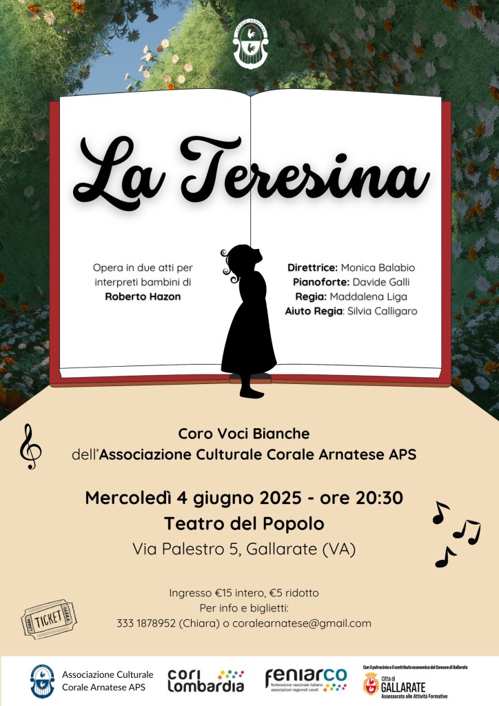 “La Teresina” è un’opera in due atti scritta da Roberto Hazon e interpretata da giovanissimi talenti del Coro Voci Bianche dell’Associazione Culturale Corale Arnatese APS.