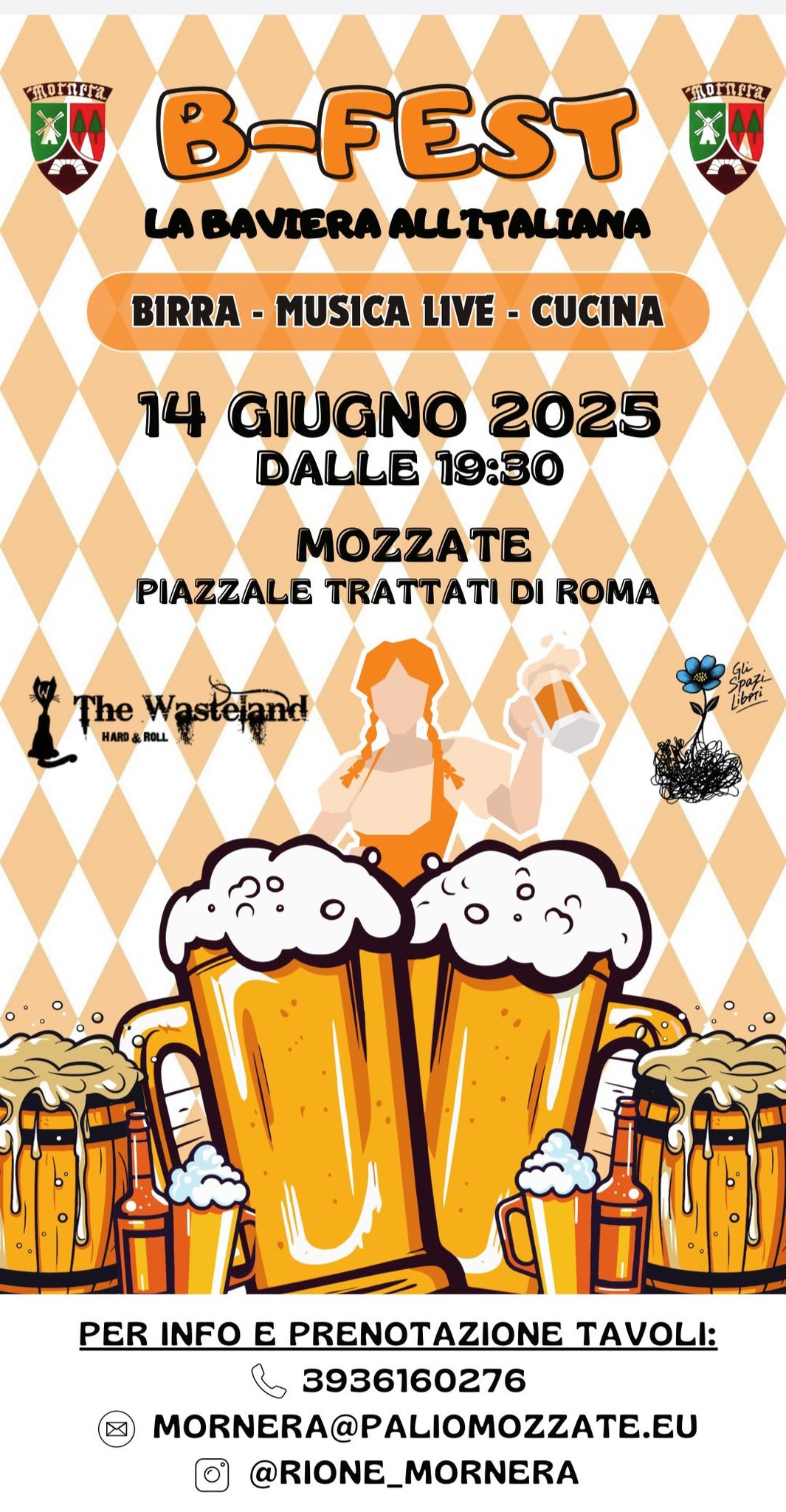 Il Rione Mornera del Palio di Mozzate ti invita a una serata dal sapore bavarese, tra boccali schiumanti, street food da sagra e tanta musica dal vivo.