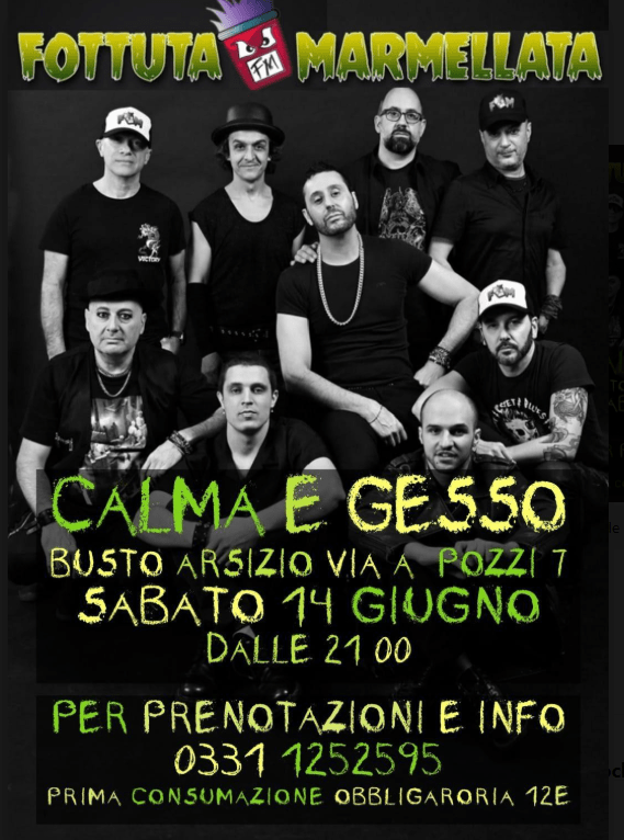 BUSTO ARSIZIO – Sabato 14 giugno, i riflettori si accendono su Calma e Gesso, storico locale di Busto Arsizio (via A. Pozzi 7), per un concerto da non perdere: sul palco arrivano i Fottuta Marmellata, collettivo tra funk, rap e rock capace di far saltare il pubblico dalla prima all’ultima nota.