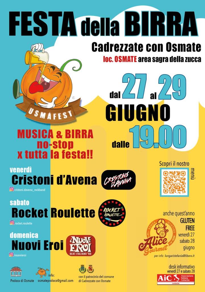 Organizzata con passione dalla Pro Loco di Osmate, la festa torna anche quest’anno per tre serate da bere tutte d’un fiato: musica live, panini fumanti, risate in compagnia e boccali che si alzano al cielo.
