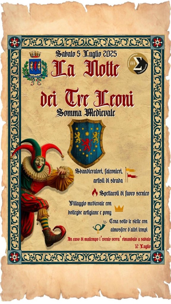 Il cuore di Somma Lombardo si trasformerà in un grande villaggio medievale per la seconda edizione de La Notte dei Tre Leoni, la festa che fa sognare grandi e piccini tra nobili follie, spettacoli, musici e cavalieri.