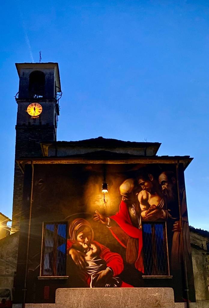 Come anticipato, i murales di Andrea Ravo Mattoni escono dai confini italiani e dal Comune di Angera, dove è possibile ammirare il Fanciullo con canestro di frutta, del noto Caravaggio, si arriva fino al Trionfo di Bacco a Oviedo, in Spagna, passando per Santa Zacamil, a San Salvador.