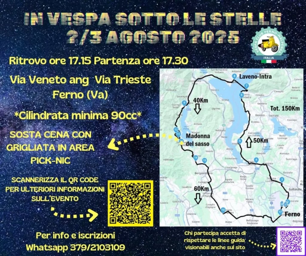 📲 Per info, aggiornamenti o per partecipare: contatta Vespa Club Ferno via social o su WhatsApp al numero: 379 210 3109