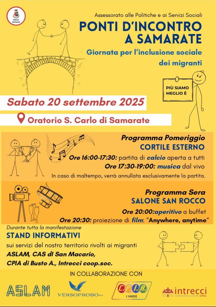 SAMARATE – Una giornata di festa e condivisione pensata per abbattere barriere e costruire legami. Ponti d’Incontro porta a Samarate sport, musica e convivialità con un programma ricco e aperto a tutti: