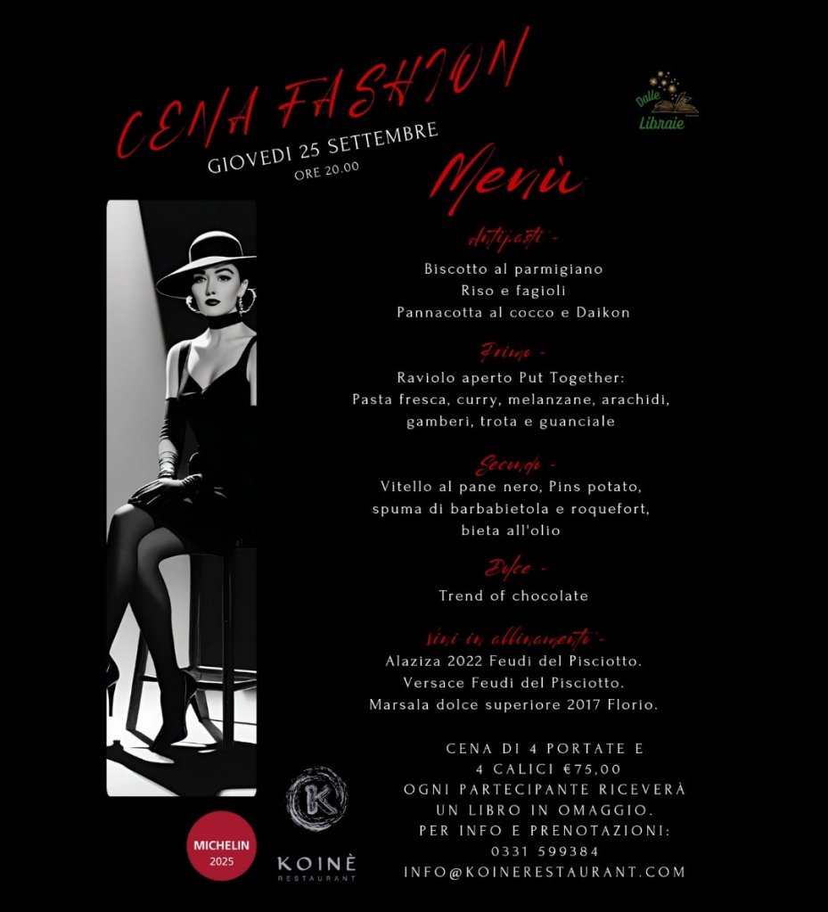 LEGNANO – La nuova stagione di eventi Dalle Libraie inizia con un appuntamento che unisce buon cibo, arte e bellezza. Una vera e propria passerella a tavola, dove moda e gusto si intrecciano per dare vita a un’esperienza decisamente inusuale.