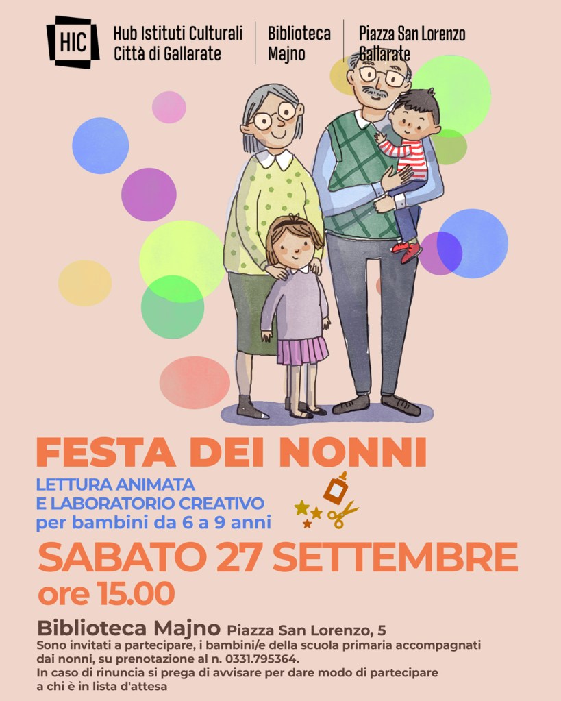 GALLARATE – Un pomeriggio dedicato a nonni e nipoti: sabato 27 settembre alle ore 15.00 la Biblioteca L. Majno di Piazza San Lorenzo celebra la Festa dei Nonni con un evento speciale.