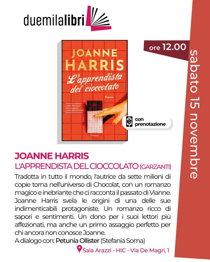 GALLARATE – Profumo di cacao e magia narrativa a Gallarate: arriva Joanne Harris, l’autrice da oltre sette milioni di copie vendute in tutto il mondo, che torna nell’universo di Chocolat con il nuovo romanzo L’apprendista del cioccolato (Garzanti).