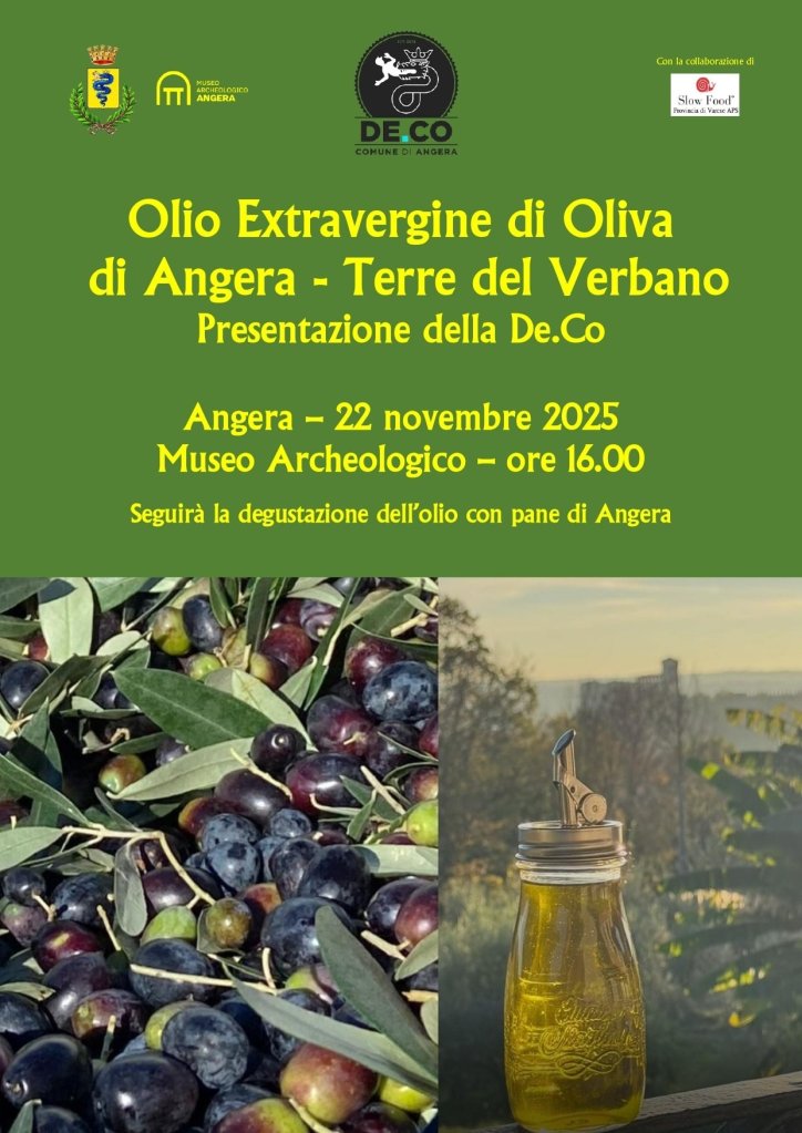 A seguire, i partecipanti potranno assaggiare l’olio prodotto da Roberto Monteggia, accompagnato dal tradizionale pane di Angera del Panificio Giombelli: un abbinamento semplice ma perfetto per scoprire carattere, profumi e personalità del nuovo extravergine angerese.