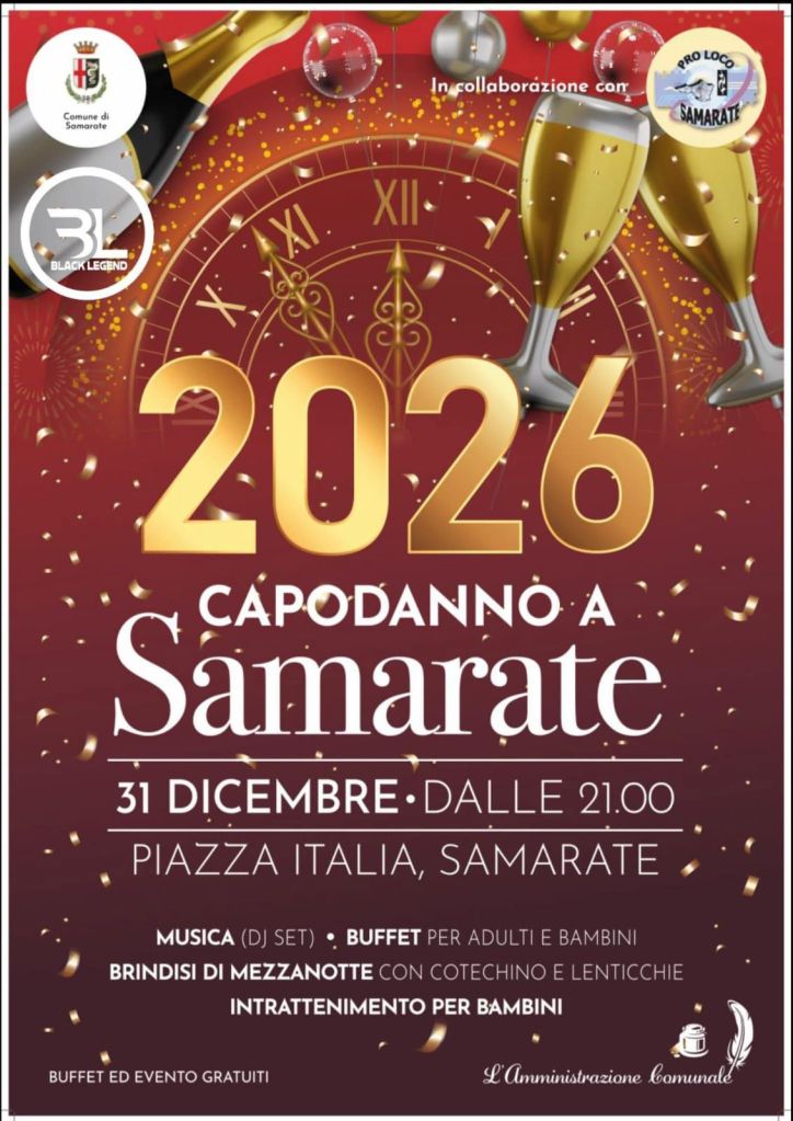 SAMARATE – Gli inviti ufficiali sono arrivati e ormai non ci sono più scuse: Samarate è pronta a salutare il 2025 e accogliere il 2026 con una grande festa in piazza, aperta a tutti e pensata per far ballare, brindare e divertirsi insieme.