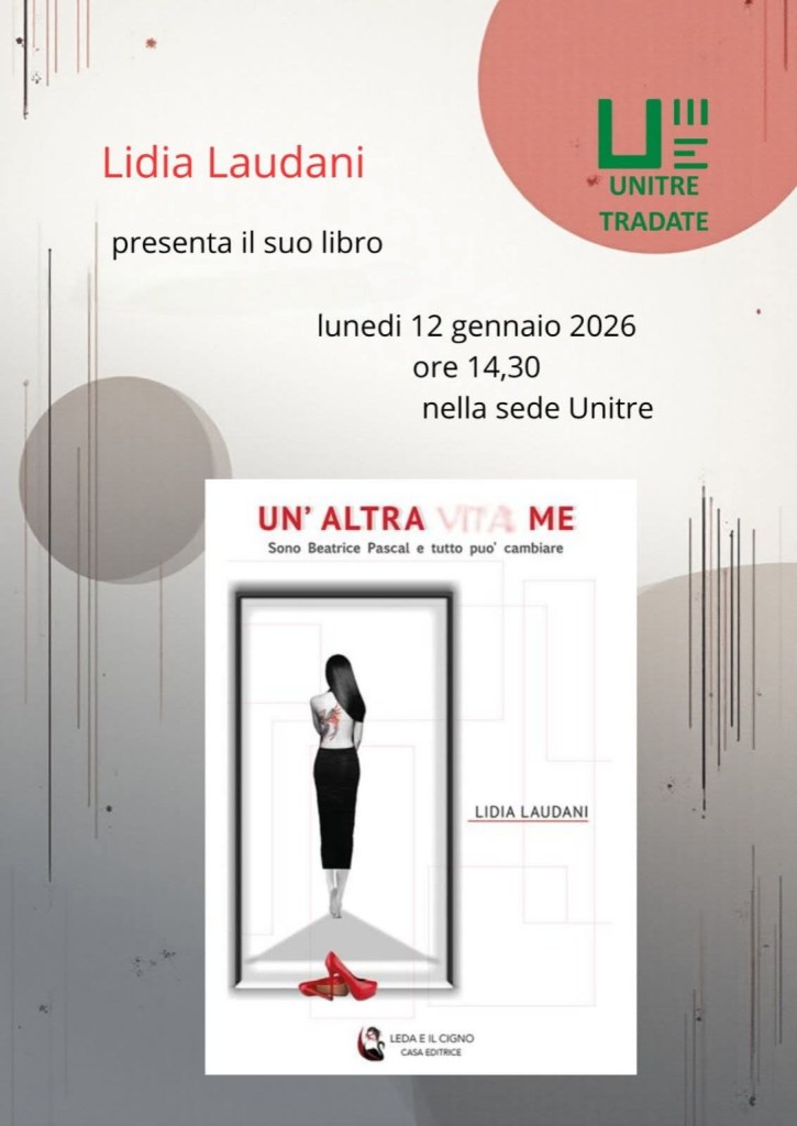 Lunedì 12 gennaio, alle 14.30, nella sede Unitre di Tradate, Lidia Laudani presenta Un’Altra Me, un romanzo che riprende il filo della vita di Beatrice dopo lo strappo. È cambiata, è più consapevole, porta addosso i segni di ciò che è stato. E quello che l’aspetta non è una replica, ma una svolta.