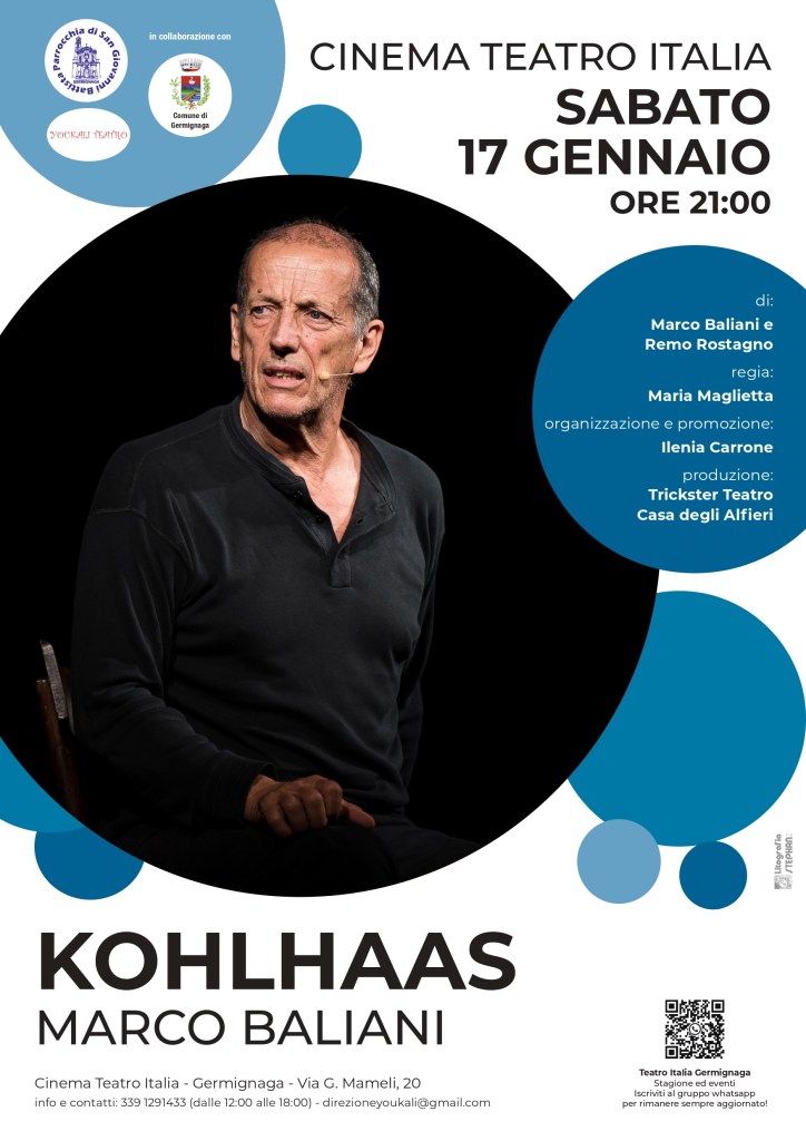 GERMIGNAGA – Sabato 24 gennaio alle ore 21.00, il Teatro Italia di Germignaga ospita uno degli spettacoli più emblematici della storia del teatro italiano: “Kohlhaas” di Marco Baliani, in scena nell’ambito della stagione teatrale.