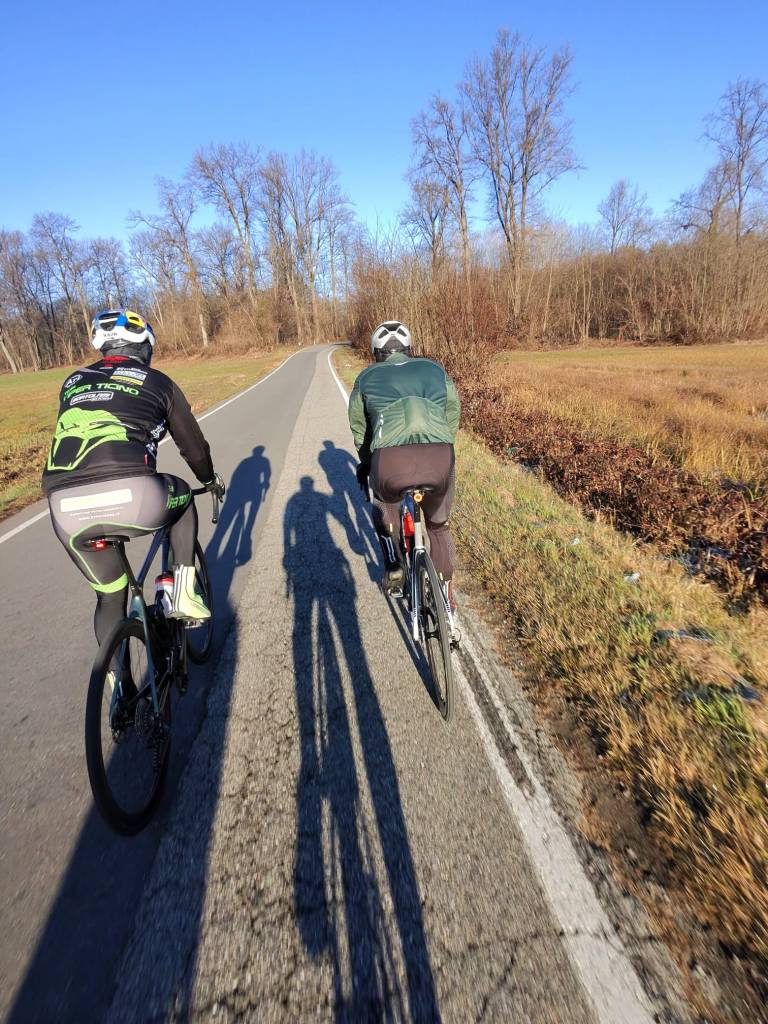 È inverno, precisamente il 14 dicembre, ore 8.30. Il termometro segna -1°, ma poco importa: in gruppo si pedala di più e ci si scalda prima. Pronti… via! Si recuperano tre amici e si parte. Destinazione: Lago di Monate.