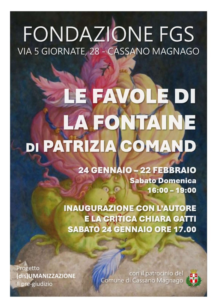 CASSANO MAGNAGO –Le favole non sono mai state innocenti. Sotto la superficie del racconto, tra animali parlanti e morali finali, si nasconde da sempre un sistema di giudizi, categorie e aspettative. È proprio da qui che parte “Favole di La Fontaine”, la mostra di Patrizia Comand che Fondazione FGS inaugura sabato 24 gennaio 2026 alle ore 17.00, nella sede di via 5 Giornate 28 a Cassano Magnago.