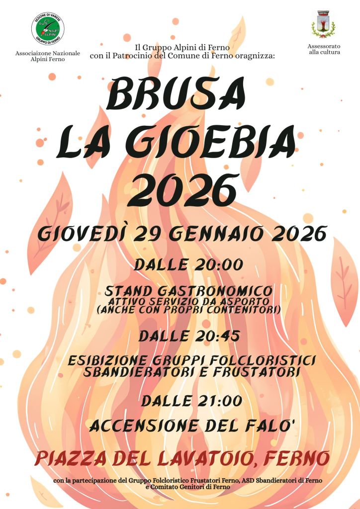 FERNO – C’è un momento, nel cuore dell’inverno, in cui il buio si accorcia e la comunità si stringe attorno a una fiamma. È il Falò della Gioeubia, rito antico che affida al fuoco purificatore tutto ciò che l’inverno ha lasciato addosso: paure, pensieri pesanti, guai da salutare senza rimpianti.