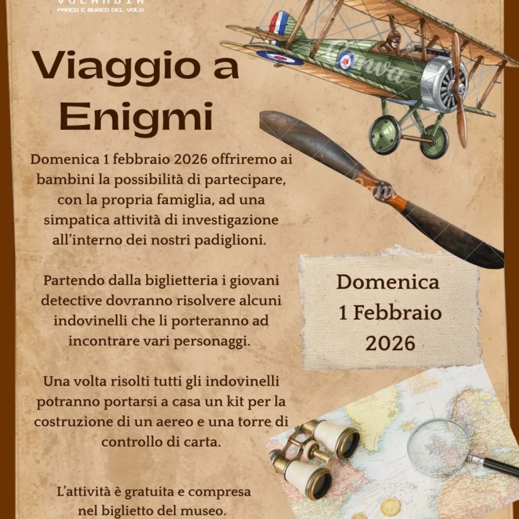 Tra aerei, hangar e personaggi misteriosi, il museo si trasforma in un vero campo d’indagine dedicato a bambine e bambini curiosi, amanti degli enigmi e delle storie da decifrare passo dopo passo.