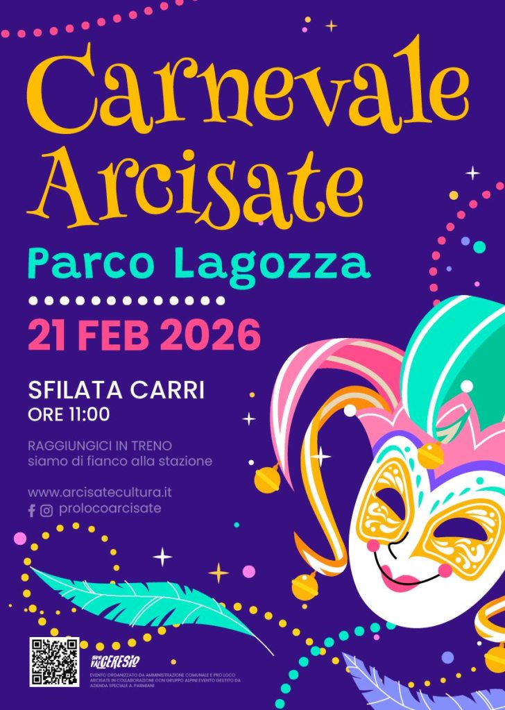 La Pro Loco consiglia di raggiungere la festa in treno: la stazione di Arcisate è proprio accanto all’area eventi. Zero stress da parcheggio, massimo Carnevale.