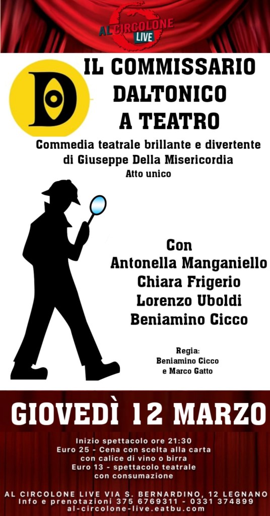 📌 “Il commissario daltonico a teatro” arriva ad Al Circolone Live ed è una di quelle commedie che partono da un giallo e finiscono a colpi di risate, equivoci e tempi comici ben oliati. Qui nessuno vede le cose come sono davvero, men che meno il commissario.