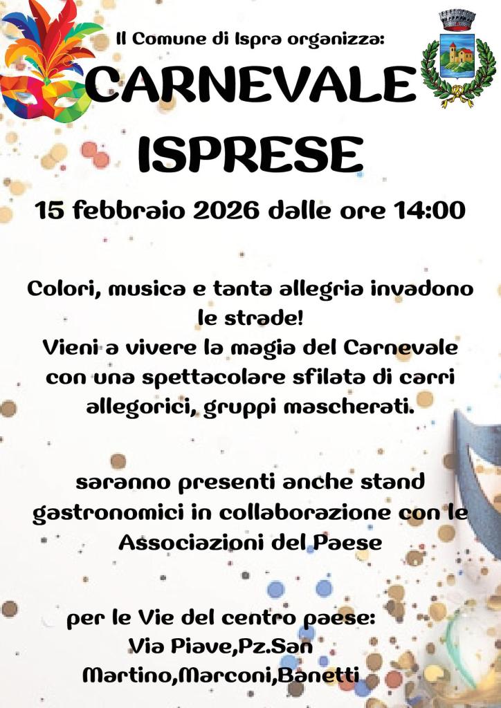 Domenica 15 febbraio, a partire dalle ore 14, il centro storico ospiterà il Carnevale Isprese, organizzato dal Comune.