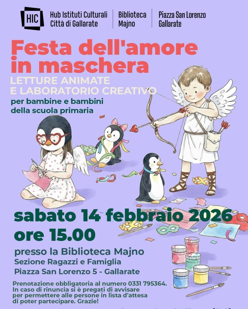 Un appuntamento dedicato a bambini e bambine della scuola primaria, tra letture animate e laboratori creativi, per celebrare l’amore in tutte le sue forme… rigorosamente in maschera.