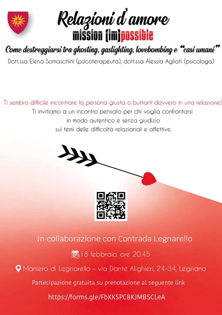 La Contrada Legnarello ospita un ciclo di due incontri laboratoriali gratuiti, rivolti a ragazzi e adulti, dedicati ai temi delle relazioni affettive e del mondo emotivo adolescenziale.