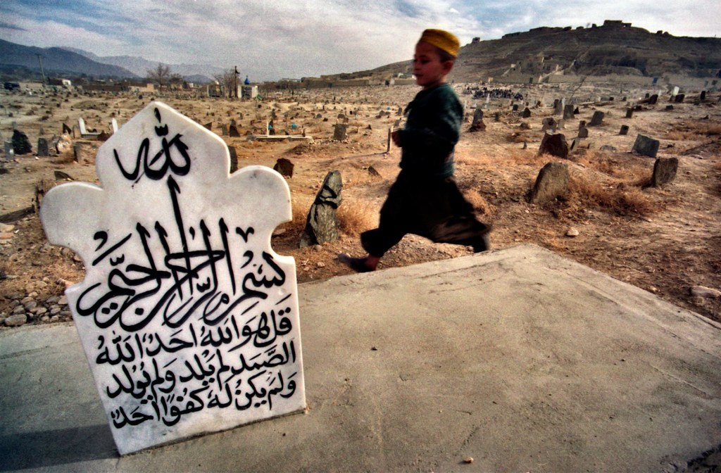 Kabul / Afghanistan 2002 Un piccolo afgano tra le tombe di un cimitero alle porte di Kabul. Foto Livio Senigalliesi. Kabul / Afghanistan.Child among the tombs of a war cemetery on the outskirts of Kabul. Photo Livio Senigalliesi