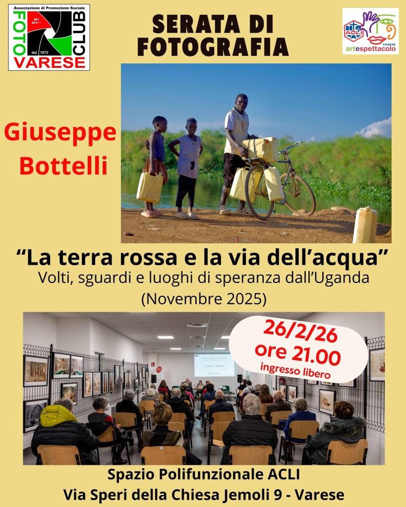 “La terra rossa e la via dell’acqua” è il titolo della mostra fotografica che porta a Varese volti, passi e silenzi dall’Uganda, raccolti nel novembre 2025 dall’obiettivo di Giuseppe Bottelli.