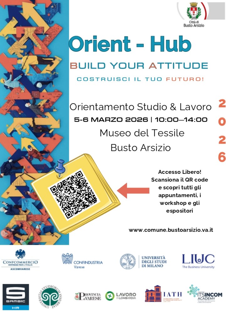 Il 5 e 6 marzo, dalle 10:00 alle 14:00, le Sale Gemelle del Museo del Tessile ospitano la seconda edizione di ORIENT–HUB, l’evento promosso dall’Amministrazione comunale, in particolare dall’assessorato alle Politiche educative, dedicato ai giovani dai 16 ai 34 anni che vogliono fare chiarezza tra università, formazione professionale e mondo del lavoro.