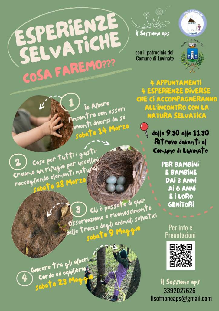 Entrare in relazione con la natura, esplorare il bosco e imparare attraverso il gioco: nasce con questo spirito “Esperienze selvatiche”, il nuovo ciclo di attività dedicate alle famiglie con bambini dai 3 ai 6 anni promosso dal Comitato Amici Asilo di Luvinate.