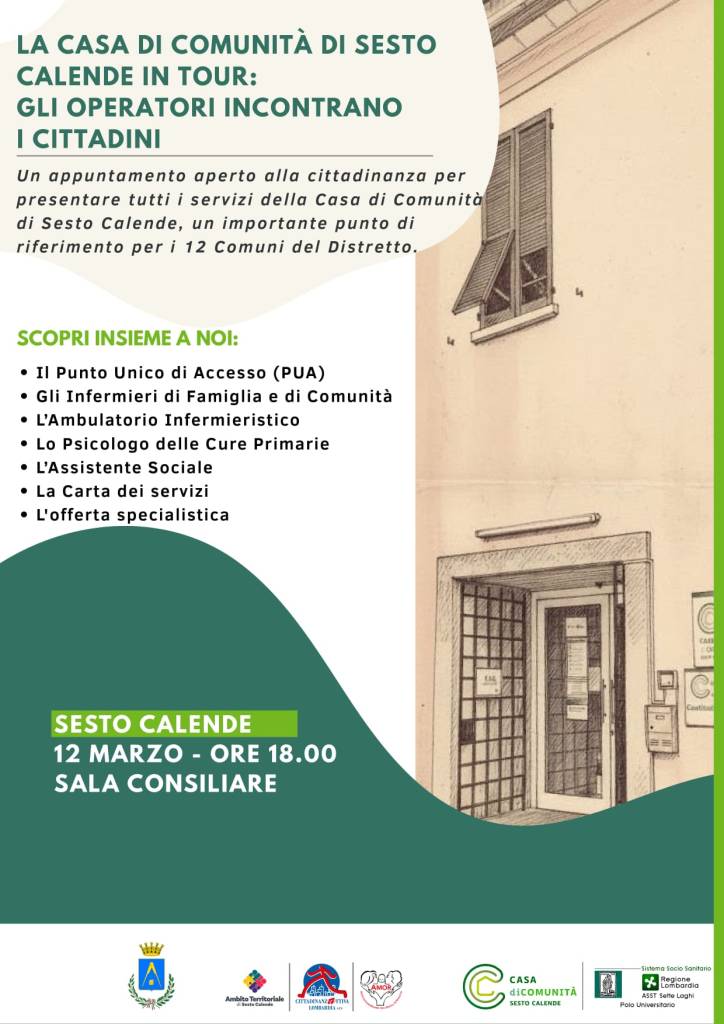 Sempre giovedì 12 marzo alle 18, nella Sala Consiliare del Comune di Sesto Calende, si terrà l’incontro “La Casa di Comunità in tour”.