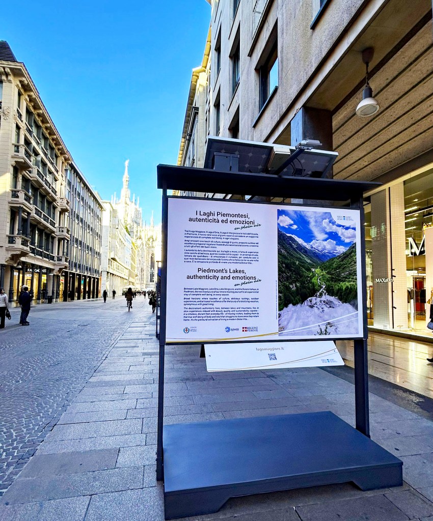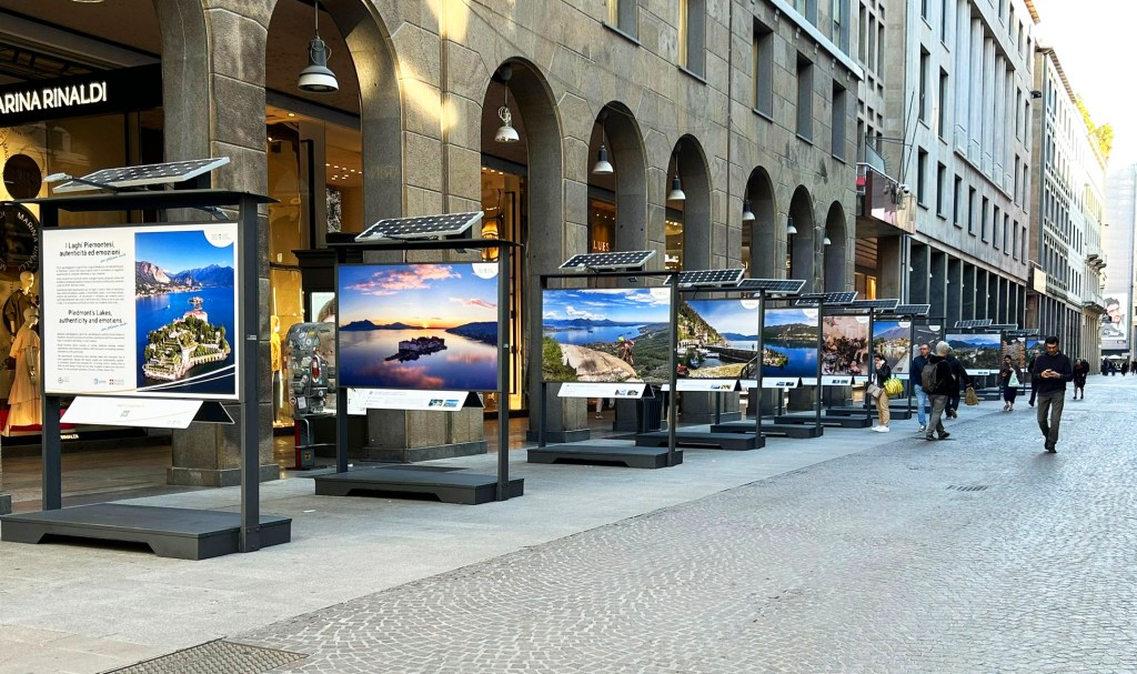 In Corso Vittorio Emanuele II arriva una mostra che è un piccolo portale aperto verso nord: un viaggio fotografico firmato dal Distretto Turistico dei Laghi che porta nel cuore della città la bellezza del Lago Maggiore, del Lago d’Orta, del Lago di Mergozzo e delle valli dell’Ossola.
