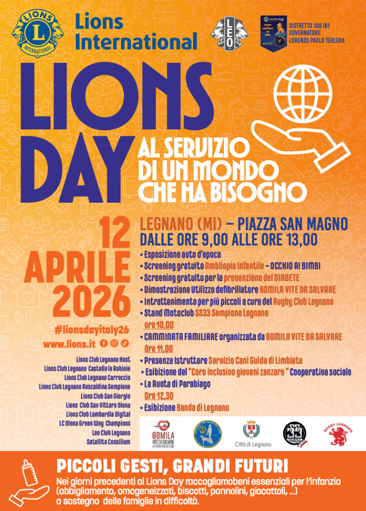 Domenica 12 aprile 2026 i club del territorio – tra cui Lions Club Legnano Host, Lions Club Legnano Carroccio e molti altri – si presentano alla cittadinanza con stand, attività e iniziative aperte a tutti.