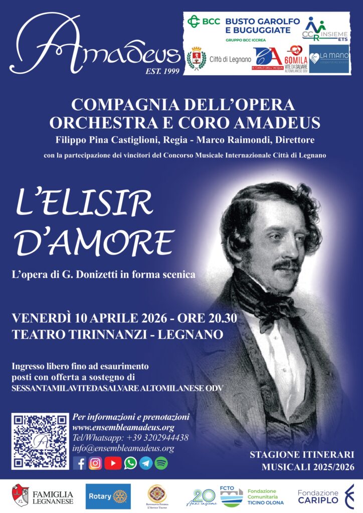 Venerdì 10 aprile 2026 il Teatro Tirinnanzi si trasforma in un piccolo villaggio dell’opera, con un doppio appuntamento dedicato a L’elisir d’amore di Gaetano Donizetti.