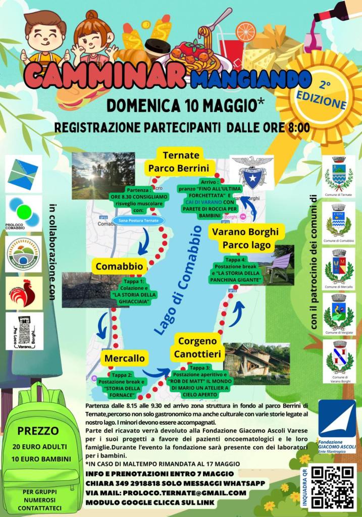 Organizzato insieme alle Pro Loco di Ternate, Comabbio, Mercallo, Vergiate e Varano Borghi, l’evento ha anche un’anima solidale: parte del ricavato sarà devoluto alla Fondazione Giacomo Ascoli, impegnata nel supporto ai bambini oncologici e alle loro famiglie.